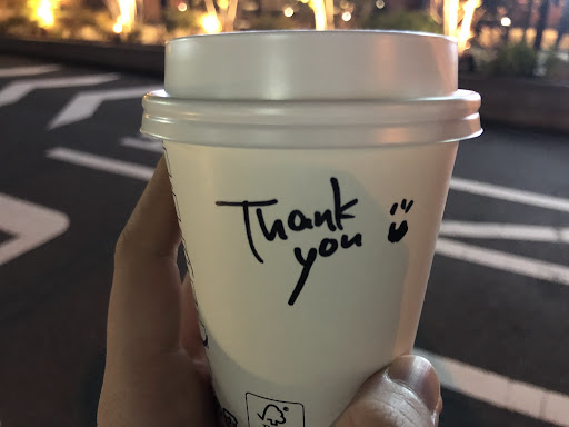 Guys, that was so sweet! Usually I visit this place by car and take coffee to go, but yesterday I decided to go in and buy coffee myself. The staff were very polite and friendly, when I left Starbucks, I found that on my drink it is written “thank you” with a marker! Oh, that's so cute! I went back and thanked the staff! Very very cute 😍🌟 Thank you...