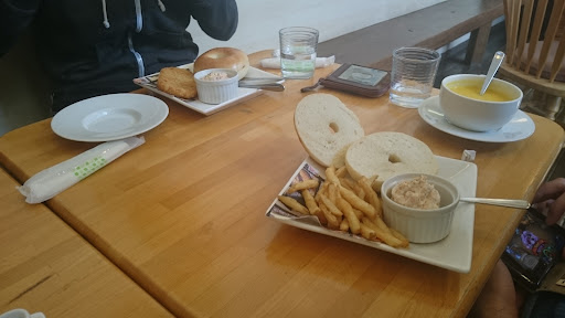 Read moreReally cute bagel cafe! Compared to bagels in the UK or the US, the bagels were average, but high quality by Japans standard! They do a set which is one of the bagels with either fries or a hashbrown and a drink or soup. I got the red beef burger bagel set with kabocha soup and fries. It was reallllllly good! The fries are made in house and really good. My friend got the flake salmon cream cheese bagel set with a hash brown and minestrone soup. She said the salom cream cheese was especially good. The drink selection is pretty big with a variety of cold and hot drinks. Very nice small cafe to get...