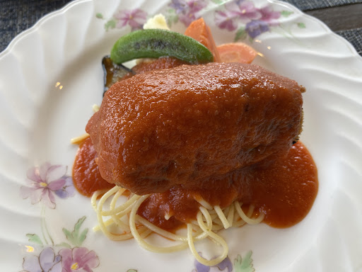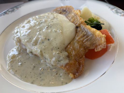 メインが出てきてびーっくりした😱 (赤いトマトソースのかかっているソテー)のはずが!! なんの説明もなく出てきたメインは〜 (白いホワイトソース)ではないか! 赤と白は真反対〜目を疑った🤣 なら…写真を出す必要はない いや…写真あると余計に悪いよなぁ〜