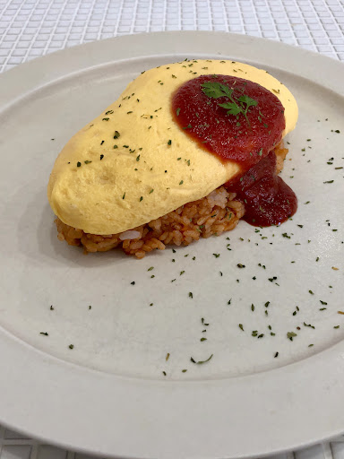 🍳Omurice (omelette rice)- the spinach-salmon omuirce (+¥100) was VERY tasty! The rice was especially tasty.