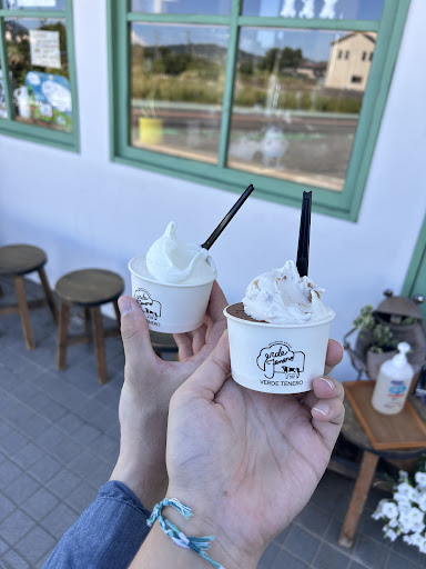 Read more3年前にオープンしたジェラート専門店。メニューは12種類。スタンダードなミルク/¥320]や[チョコ/¥320]から[なるとオレンジ/¥320など地元食材に、こだわったものも……。 そんなジェラートの1番の特徴が、他では食べられない濃厚でミルクが美味しいです。 実は、オーナーの原さんは、地元で三代続く酪農家。 その牧場の、搾りたての牛乳でジェラートを作っているんです。 その濃厚なジェラートを求めて、市街地から離れているにも関わらず。足を運ぶお客さんが多いと言います。さらに定期的に、淡路島中をキッチンカーで販売。 苺、チョコ、ミルク、3種類のったジェラートが¥600。 ミルクは濃厚なのが分かる。濃い牛乳飲んだときの印象に近いです……!!!!!。超美味しい……!!!!!。 また苺は、香りが強く、イチゴのつぶつぶが残しています。 そしてチョコは、口の中でチョコの風味が広がって超美味しい。 ...