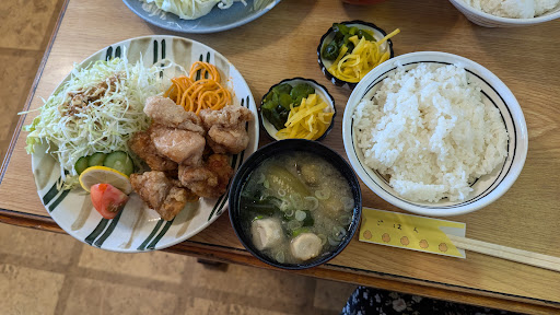 Read moreカレー目当てで行ったら売り切れでした!席に座った時にすぐに教えてくれたのであまりガッカリ感もなく気分良かったです。店員さん優しいいい方でした。地元の方がよく利用されるみたいで、来店者は地元の方しかいなかったっぽいです。 からあげ定食を注文しました。胡椒がきいていてほんのりスパイシーでお肉が柔らかくてマジでうまい。ご飯がでかい茶碗でくるのでボリューミーでした!味噌汁はナス、ワカメ、お麩と具だくさんです。 こんどはオムライス食べたいな。 駐車場はお店の隣と、さらに隣...