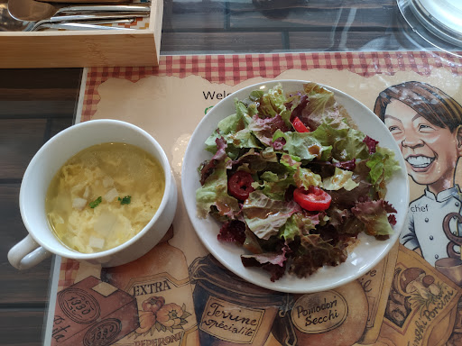 Read moreトマトとモッツァレラチーズのパスタ、季節の野菜のペペロンチーノ、フルケーキセット(パン、スープ、サラダ、飲み物、ケーキのセット)を頼みました。 トマトとモッツァレラチーズのパスタは、モッツァレラチーズがたくさん入っていて、トマトソースは優しい味付けでしたので、モッツァレラチーズがよく味わえました、季節の野菜のペペロンチーノは、強烈なニンニクと唐辛子の味ではなく、美味しさはしっかりあるが優しい味で、お子さまでも食べられます、この時の野菜はサクサクインゲン(インゲン特有の噛むとキュッとした歯触りがないサクサクした歯触り)、茎ブロッコリーで美味しかったです。スープはニンニクのスープで、どちらもニンニクが新鮮なためか嫌なニンニク臭さはなく、ニンニクの美味しさが引き立ってました。ケーキはクレームブリュレとガトーショコラでクレームブリュレは生クリームと卵のバランスがよく、キャラメリゼした部分がパリパリで苦味もちょうど良く美味しかったです。ガトーショコラは味はとても良かったのですがもう少ししっとり感がある方が私の好みでした。 店内も広々して、全体的に、このクォリティーでこの価格ならお得な食事ではないのでしょうか? 写真のトマトとモッツァレラチーズのパスタは写真を撮る前に食べ散らかしてし...