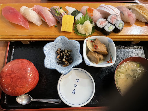 25.9.13の夜、車中泊のためこちらで夕食を取りました。 この日は和田浦方面から来たのですが、土砂降りなのと街灯があまりなく真っ暗な事で道の駅がどこにあるかもわからないくらいでした。 何度か行ってるのですが、夜は初めて。道の駅営業が終わってると、とにかく真っ暗です‼️ はな房さんは営業してるのを確認して行ったのですが…真っ暗‼️不安になりながらも駐車して建物の中へ確認に。真っ暗な中かすかに灯りが。 ホッとしましたね〜こちらを逃すと食事にありつけないので。 ありがたさを胸に入店。店内は多分ひと組の家族連れがいた模様。テーブル席に座り、やはり、海鮮丼と握り寿司を注文。そして、ビールとレモンサワー。 握り寿司は大きなゲタに乗ってきました。女性のスタッフは何も言わずに置きました。そう、ネタの説明をしてくれなかったのです。そう言うものなのかと思っていましたが、後から来たお客さん(ちょっとセレブっぽい)を対応したのは男性スタッフ。私と同じお寿司を注文。持ってきたのも男性スタッフ。この人はちゃんとネタの説明していた。この違いはなんだろう…人を見られたか?大体のネタはわかったがひとつわからないものがあった。聞き耳を立ててそのひとつが判明。やはり、なんのネタかをわかった上で食べた方が美味しい。手を抜かず口頭か紙でもいい教えて欲しい。 それと、こちらのレモンサワーだが…いつも飲んでるのとちょっと味が違う。お酒に詳しくないけれどなんの焼酎で割ってるんだろう? 以前屋久島で不注意にもレモンサワーを頼んで、失敗したことがある。鹿児島なので芋焼酎で割ってあったのだ。これを思い出す。ちょっと独特なレモンサワーだった。二口で主人のビールと交換してもらった。 20時ラストオーダーだっただろうか、このあたりでこの時間やってるのはほ...