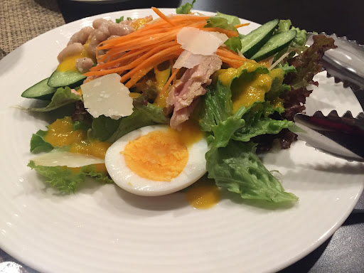 サラダはリーズナブルなのに新鮮で量があり、ドレッシングも美味。黄桃のカプレーゼはデザートと前菜の中間のようなお味で食欲を増進しました。 カルパッチョの魚の鮮度も抜群で、コールドビーフもしっかり肉厚でルッコラとチーズが最高でした。 ピザはナンのようなモチモチのピザで、パリパリ派の自分でもソースとチーズの相性が良くめちゃうま。そして、トマトパスタはトマトの香りが良すぎてチーズもたっぷりで最高でした! デザートもオールドスタイルのプリンに生クリームといちじくが乗っており食べやすかったです♪