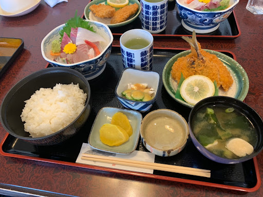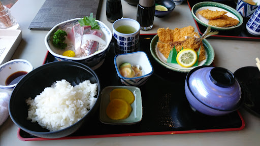 Read moreお値段設定は少々高め。 全体的に、旅行じゃなければお昼ご飯に出せない値段です。 近くに食事できる所がなく、しょうがなく入ったお店でしたが、美味しい! ご飯の量も多く、お刺身も分厚く、フライも全て違うお魚で3枚、お漬物も これでもか!っていうくらい分厚い。ボリューム満点! 特にお味噌汁が絶品でした(//∇//) 母が頼んだカツ丼も、薄すぎない優しい味付けなのにしっかり美味しい味でした٩(๑❛ᴗ❛๑)۶ また...