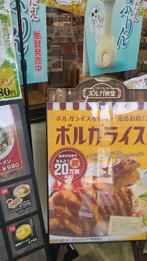 Read more4月2日水曜日の20時過ぎにお腹が空いて立ち寄りましたが、入口のメニューで食べたい!と思った「ボルガライス」 なんと売り切れ!! 24時間やってるフードコートの店なのに、そしておかげさまで25万食突破!とか謳ってるのに、券売機の前で突きつけられた現実 「売 り 切...