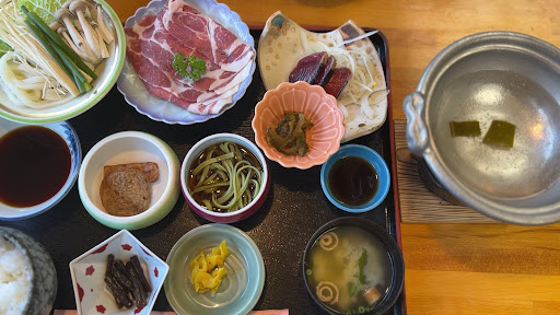 Read more今回はこちらのお店にやって来ました 知覧の遺構が展示してあるエリアでの昼食です 鹿児島にやって来て地の物を食していない事を感じお邪魔しました 11:40到着 飲食ブースに入るとお土産売り場は学校関係の小中学生と思われる学生たちで溢れかえり購入する様子が伺えました 程なくして料理が到着しました それではいただきます まずは野菜を鍋に入れて火を通していきます その間小鉢が豊富でご飯のお供に事欠きません その中にはさつま揚げもあり地元の食が詰め込まれています ある程度、野菜に火が通って来たらメインの黒豚召喚です お肉を軽くしゃぶしゃぶして野菜と一緒にポン酢に浸して食べると豚肉の旨みと野菜の甘みが相まってとてもさっぱり美味しく頂けます 小鉢を箸休めにいただきながら完食です ご馳走様でした 観光地でありながら美味しい地元...