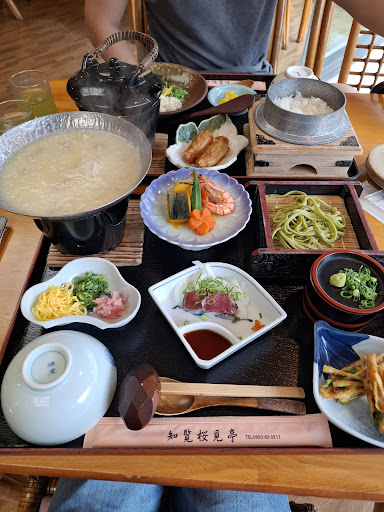 Read more知覧平和特攻会館に訪れる際、バス停を降り立って目の前にあるのが☆こちらでした。平和特攻会館に向かう間にも何軒か食事ができる場所はありましたが、荷物をバス停近くで預けたくて、入り口にコインロッカーが見えたので入りました☆お土産屋さんとレストランが合体しているお店です☆団体ツアーの方も食事されていましたが、席は別の場所でした。暑い日でしたが(;´Д`)席に着いてすぐ☆冷えたキレイなグリーン色の知覧茶を出していただき、なぜか感動しました♡おもてなししていただいた気分になりましたよ◎お食事は郷土料理の【といのずし】のセットを☆こちらは→お寿司ではなく、鶏肉入りでコトコト煮込んだ雑炊のことだそうで、鶏肉の出汁がしっかり出て身体に染み込む美味しさでした◎セットには→茶蕎麦と鰹のタタキもあり♡薩摩を堪能出来ました☆オシャレなお店〜景色が良いお店〜とかではありませんが、食べたいものがセットになっていて◎お...