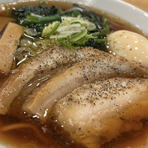 チャーシューは熱々のスープに沈めておくと柔らかくとろとろに。味玉もメンマもわたし好み、長ねぎとほうれん草も丁寧な調理。 ここにナルトが一切れのっていれば、わたし的に完璧な中華そばのビジュアルでした。笑