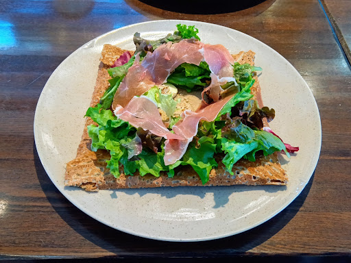 Read moreカマンベールチーズと生ハムのガレット ドリンクセット を注文。 ガレットは美味しかったですし、ほどほどの量がありますが、男の人にはこれだけでは物足りないという感じです。 食券を買う券売機は、奥の厨房の横に2台並んで置いてあるので、他の客がいても焦らずにメニューを選べます。 しかし、初めての人には、この店舗のルールがわかりづらいので、わかりやすい説明書きが欲しいところです。 食券を厨房の前で渡して、好きな席に座って待っていると、店舗の人が料理を運んで来てくれますが、食べ終わったら、自分で食器を戻す必要があり、水はセルフサービスになっています。 座席は比較的多くありますが、配置はあま...