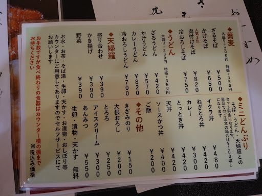 Read more店はとても上品でよい意味でランチ価格と釣り合っていません。 ランチのソバ、うどんの値段が安いです。 私はソバとイクラ丼を、頼みました。 そばつゆが塩辛くトケトゲしく感じました、 イクラ丼は大葉ときざみ海苔は良いのですが暖かいご飯だったのでは残念です。 これは寿司飯にすべきでは? 好みの問題だと思いますが。 このご時世、値段の頑張りも必要でしょうが店構えも雰囲気も良いので、もうひと手間かけて少し値段を上げても...