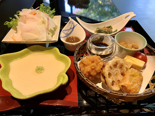 Read more前菜 ●カンパチのお刺身 ●天ぷら(5種類) ●玉ねぎのサラダ ●お豆腐(わさび付き) ●お味噌味のタコ? ●白和え