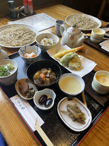 Read moreたまたま通りがかって、入ったお店だったけど、美味しく頂きました。 Aセット2,750円。ちょっとお高い気もするけど、、、。お蕎麦は細麺、コシと香りは感じなかったけど、量は思っていたより多め。わさびは、香りも高くて辛味もあって美味しかった。 セットの天ぷらは、、、エビは美味しかったけど、大好きな茄子とピーマンがイマイチ。茄子は、噛み切った断面が何故か真茶色🟤なんで? ピーマンは瑞々しさが全くなくて残念。 他の小鉢はお袋の味で、茶碗蒸し、がめ煮、なます、ふきの煮物、煮豆、お漬物、全て美味しかった。特にふきの煮物はとっても美味しい。 他の...
