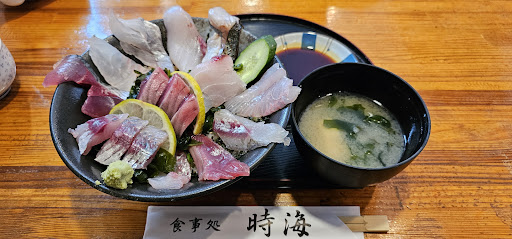 Read more今日はマジ感動した昼食となりました。 南大隈町役場佐多支所の近くにあります。駐車場はお店の前ですが、狭い。。 食事処時海(ときみ) 10種のお刺身を、ご飯にかぶせ盛った[時海丼]がおすすめ^_^ 素晴らしいのはご飯が、熱からず冷たからず絶妙な温度。 そうなんです❗️お刺身のあじを殺さないように、かと言って、ご飯の味も殺さないよう調理されています。 お刺身は大将自ら朝3時に地元の親戚操る船で取りに行かれているとの事。素晴らしいじゃありませんか‼️ モッチモチのお刺身って凄いでしょ‼️お魚の締め方が素晴らしいのだと思います。新鮮間違いないですよ。 お刺身を味わってから、醤油タレをかけていただきました。コレがモッチモチの、お刺身となんとも言えない温度のご飯がたまらんのです。 さらに、お味噌汁がコレまた最高‼️ 海鮮丼の味を引き立ててくれます。なんだろうか、あさり汁のような感覚あったりして思わずおかわりしちゃいましたよ。お味噌は近くのAコープで販売しているとこ事でしたが、今回は発酵準備中で店内にはありませんでした。 次の楽しみできましたね。٩( ᐛ...