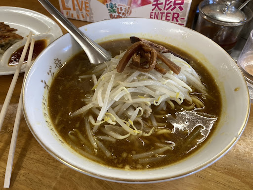 Read more南相馬市のえぞ龍さん初めての来店✨店自体はあまり大きくはないですが駐車場も6〜7台停めれる感じで車を停めるとニンニクの良い香りがします😋 店に入ると年配のお父さんとお母さんが元気に2人で切り盛りしています🤗 厨房が見えますが綺麗にされていて好感がもてます👌 自分は味噌ラーメン大盛りにチャーシュートッピング✨ 嫁さんはカレー味噌ラーメンです👌 追加で餃子を頼みましたが着丼まではかなり時間がかかりました💦 昼時とあってテーブル席や、カウンター席も満席🤣 人気がうかがえますがこれは仕方ないですね🤣おじさんも作りながら忙しくて大変だーって騒いでました笑 さぁ来ました来ました味噌ラーメン🍜 スープをひとくちすするとニンニクがガツンと😋チャーシューは柔らかくいっぱいのっていて麺は中太麺でスープが絡んで美味しいですがこれが札幌味噌ラーメンなんだなと感心しました🌈 カレー味噌ラーメンはスパイスが効いていてピリ辛で味噌と合いますね😋 餃子はカリッとしていて中の餡もねっとりしていて焼きたてが最高🌈 ホント美味しかったですご馳走...