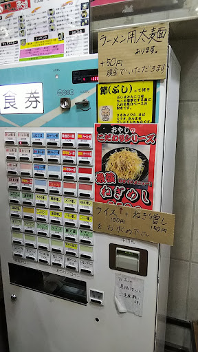 ライス100円+白髪ねぎ増し150円の食券を揃えて出すと、ねぎめしというメニューに昇格出来るみたいです。スタミナ系の味のねぎが盛られたご飯でした。(ねぎの辛みに敏感な人には無理かもですが)ねぎの辛みがアクセント...