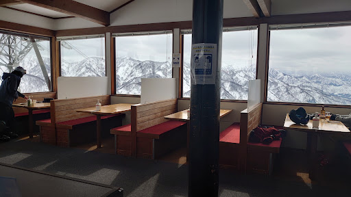 八海山六日町スキー場の中腹にあるレストランです。ゴンドラで山頂から滑って降りると中腹にあります。 コース途中の休憩できる場所はゲレンデ内でここだけなので重宝されます。 食券を購入してチケットを店員さんに渡すと席まで料理を持ってきてくれます。 席は斜面が見下ろせる窓辺の席がおすすめですね。どこも6人は座れるような広めのテーブルで仕切りもあるボックス席になっていて過ごしやすいです。 料理は基本カレーライスのみなので、そこは残念。ヒレカツ、ハンバーグ、唐揚げなどのカレーの種類は選べます。あとはきのこ汁やフライドポテトくらいがサイドメニュー。デザートはクレープのみ。飲み物はビールやジュースがありました。下のベースキャンプよりはかなりメニューを絞った営業のようでした。 日曜でしたが、それほど混み合っておらずゆっくりと休憩、食事がとれました。トイレもありますし、休憩を取るには貴重な場所でした。もう少し料理がいろいろ...