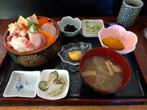 Read moreランチ1,100円。ネタが新鮮、甘みもあり分厚い。小鉢付き。珈琲・紅茶も食後にセルフで飲めます。海鮮丼はネタが12〜13種類でした。オススメです。追記:1300円ランチ。ネタ12種類。予約して来店。提供まで50分。中盛、大盛り無料 ご飯とご飯の間にネギトロ入り。他のお客様は帰りに山菜の天ぷらを貰っていました。イカの天ぷらをサービスで提供された方も。サーモン、タコが美味しか...