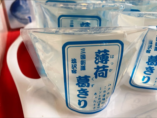 宿場の始点、交差点の角にある銘店。素朴な甘味の薄荷糖が売り。伝統のフリスク。 買って良かったと思ったのは薄荷葛切り。お風呂上がりに冷やしたこれを一口食べたら、メントールのスッキリ感と穏やかな甘味がつるりんと喉越し良くいただきました。まさに絶品!とても美味しかった。 これ、どこかで売ってるんですかね。また立ち寄りたいお店になりました。 【追記】 「はっか糖」も優れていた件です。お店で製法の写真を見て抹茶味を一袋購入。パッケージが昭和のデザインのようで面白い。帰宅後、風邪をひいて喉の痛みがあった時、小さ目に欠いた小片をなるべく溶かさないように舐めてみたら、痛みも和らぎ併せてひと時気分も良くなりました。調べると風邪に効く漢方薬の成分の一つでした。類似製品と違って後味...