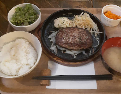 Read more平日ランチタイムに、お肉2種盛りグリルAチョイス(牛さがり肉・牛ハーフハンバーグ)税込み1290円をいただきました。 さがり肉の量は少なめ、硬め。牛ハーフハンバーグはおいしかった。 スープぬるい。 ごはんは普通盛りで丁度良かったが、軟らか過ぎで団子状。コシヒカリがもったいない。 付け合わせのジャガイモが一部半生ガリガリで残す。調理の経験が浅いようだ。 ステーキソースはテーブル上の物を自分で掛ける、ローストガーリックより玉ねぎソースが美味しかった。それより、その肉に一番合ったお店独自の調味を期待していた。 料理の満足度3 接客3 ランチ食べるには暗すぎる店内だった。 コルクの箸置...