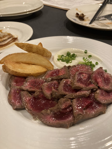 ■ローストビーフ 2,700円■ 激うま。クリーム系のソースとよく合う。あとポテトの付け合わせがおしゃれだしうまい。中は赤さを残すくらいの火入れにしてもらえると見た目でも楽しめそう。