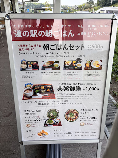 3年振りに昼間に寄ったので、久し振りに食事をしました。前は確かカレーを食べたのですが、高い割りに普通だった覚えが有ります。 席はテーブルだけみたいで、数は多いと思います。明るい雰囲気で、全体的に綺麗にされていました。注文は席でスタッフに直接頼みます。 以前とメニューが少し変わっていました。タレで漬け込んだ鹿肉のセットも有ったので迷いましたが、頼んだのは《お茶づくし御膳》1600円です。茶蕎麦は温かいのか冷たいのか選べます。クレカ使えました。 御茶と水はセルフなのですが、以前は南山城村の御茶も2種類置いてあったのに、普通の焙じ茶だけに成っていました。此れはかなり残念です。御茶の産地なのですから、食堂で飲める様にした方が良いと思いますね。味が気に入れば買う人も居るわけですから、試飲を兼ねて出せば良いのにと思います。 お茶づくし御膳と言う割りにはイマイチかなと思います。御茶は天ぷらの衣にお茶を使っているのと、茶蕎麦とサラダのドレッシングだけでした。茶葉は食べる事も出来るのですから、野菜と合わせた掻き揚げや茶葉の煮物や佃煮なんかも出せば違うと思いますね。 季節の小鉢に何故かヒジキ。村の旬を味わえると表記しながら、海藻のヒジキを出すのはどうなのかなと思います。 天ぷらにしても、衣の御茶の風味は弱くて、タレの味が勝っていて御茶の良さが出ていません。山で海老天を出されても嬉しくないし、赤海老だったので尚更残念でした。赤海老は火を通すと味が落ちますからね。 せっかく良い食材に恵まれた土地なのに、それを活かしていないと思いました。もう少しメニューを考えた方が良いのではと思いますね。値段が高めなだけに尚更そう思います...