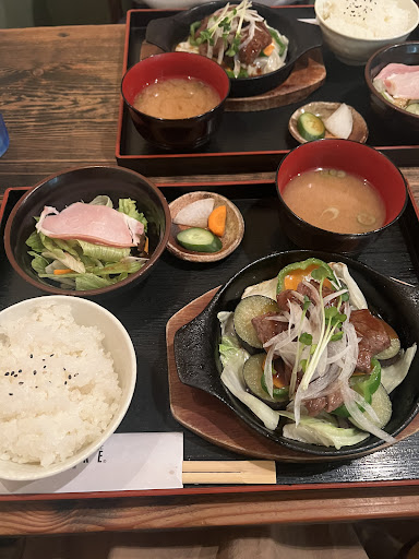 Read more今回、ランチで利用。 お店は、静かで落ち着きのある空間。大人で来たらゆったりと楽しめる。 ランチはサンドイッチ系で一緒にcoffeeをするか、三田牛ランチ(ドリンク付)にするかで悩むも、唯一のランチを味わいました。 まずはご飯。 お米が美味しい。大盛りで欲しいくらい。メインですが自分は三田牛より、その油も染み込んだ野菜が最高でした。 レギュラーなランチ、野菜を多めなランチ、肉を多めなランチと金額が変わり3パターンで自分の好み似合った食べ方が出きるのも良いですよね。初めてなので今回はレギュラーで😄 お味噌汁も市販品にお湯って感じではなく、ちゃんとお味噌汁を作ってる。 ドリンクはお店オススメのバターcoffee☕で。味と香りは確りガンと来るけれど、バターのお陰かマイルドに仕上がっていて、お代わりしたい位。ステンドグラスが写り込むほど綺麗なブラックcoffeeでした。 ランチに追加したデザート(チーズケーキ)も手作りで、coffeeとぴったりの相性でgoo👍 箕面のランチは外さないねー。 ★4なのは子供と来たら空間を壊して迷惑をお掛けしそう(勝...