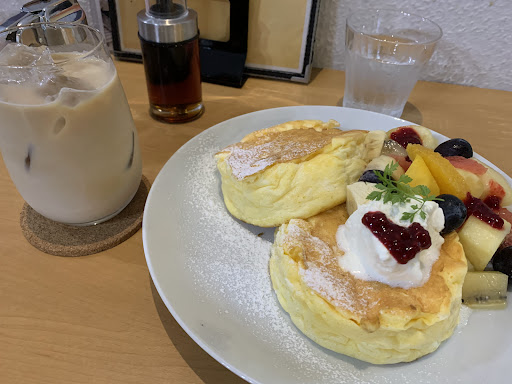 A small friendly cafe run by a young family. We had the ももパンケーキ (peach pancakes) and it was quite a revelation. The pancakes are made with beaten egg whites and they are incredibly fluffy pillows when they show up at the table. Tastes amazing and is...