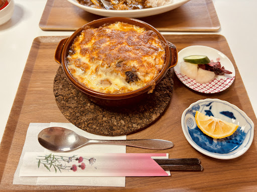 Read moreStopped here on our way to Minoh Falls. Super cute little cafe/ restaurant with art work and pottery for sale. We had the cheese curry and a miso soup with plum rice onigiri set and they were both beautiful, but the highlight was definitely the service - they were really lovely and went out of their way to try and chat despite our...