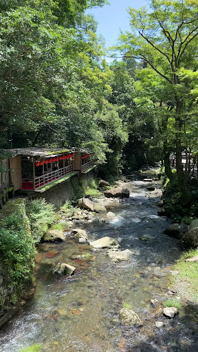 My extremely limited Nihongo was challenged as I had to make reservations by phone for this lunch at Isoyoshi Kawadoko - a 10 minute walk up inside Minoh Park. The restaurant hangs above a river and served only one meal set for lunch - salt-grilled fish, goma-dofu (slightly sweet and savory kind of pudding), rice with peas, tempura with a side of salt, clear broth. There was a light green oil that I enjoyed and had a bright citrus taste to it but didn’t get its name. The meal ended with a beautiful hojicha tea paired with mochi stuffed with red bean and a tempura fried maple leaf that the area is known for. It was the overall feeling that stays with you. Highly...