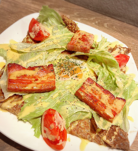 Read more所詮◯◯カフェなんて動物がメインで、料理やドリンクはおまけみたいな物だと思ってましたが、違う意味で裏切られました。 トマトとベーコンのガレットを頂きましたが、めちゃくちゃ美味しかったです。 厚切りのベーコン、新鮮なトマト、シャキシャキのレタス、もちもちの生地にコーンポタージュ?みたいな味のクリーミーなソースがかかっていてボリュームもたっぷりでした。 ドリンクがセットで1500円でしたが、美味しさとボリュームと可愛いフクロウを眺めながらというシチュエーションを考えると安いぐらいです。 ★-1はフクロウと触れ合って一緒に写真撮影が別料金(一人500円)で出来るみたいで、食事の後お願いしようかと思いましたが、お子様連れのご家族が2組、先に触れ合ってたので待ってましたが制限時間がないのか、いつまで経っても同じ方が触れ合っていたりでなかなか終わりそうにない為、諦めて帰りました。 あと客数の割に店員が二人は少ないと思いました。 男性の方が料理に付きっきりで、女性の方は触れ合いタイムのご家族に付きっきりで、入店してからメニューやお水が出て来るまでしばらく放置されてました😅 普通のカフェなら多分店を出てたレベルですが、可愛いフクロウのおかげで我慢出来ましたし、男性の方が丁寧にお詫びしながらメニューとお水を持って来て下さいました。 触れ合いタイムの時間の配分、人手が足りてない点...