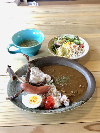 朝ジビエカレーセット ドリンク代+300円 辛すぎず優しい味、鹿肉のミンチが入ってあっさりしていて食べやすい。 サラダ、ゆで玉子、ヨーグルトが付いています。