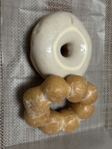 Read moreやはり夕方に行くと種類が少ないか😭 でも、安定のポンデリングは安くてうまい☺️ 焼きポンデリングは巷で少し流行りましたが、フライパンを出して加熱して、そのあとフライパンを洗うまで考えると、そこまでしなくてもいいかなー?と思いますね。普通にポンデリングを食べるってのが好きです😊 白色のドーナツはなんて名前だったかしら?とにかく美味しかったですよ!最近出たやつなのでしょうか?ふわっとしたミスタードーナツのドーナツに、ホワイトチョコがしっかりとついていてふわっと、そして、甘くて美味しかったです😄 今回、エンゼルクリームに溺れたくてミスタードーナツに行きましたが、時間が遅かったので、次は早い時間に行ってエンゼルク...
