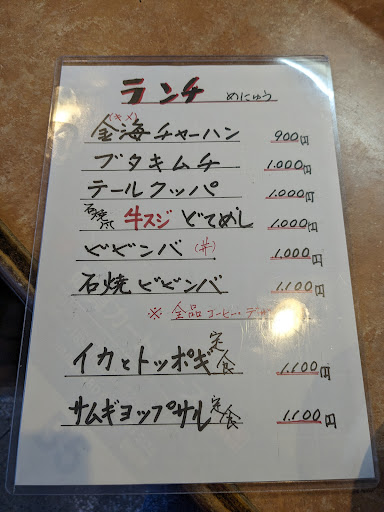 ランチで使用! かきめしビビンバを頼んだけど千円でお釣りが来て、サラダ、スープ、デザート、コーヒー付き! それぞれが優しい味でめちゃくちゃ美味しかった! 間違いない味でめっちゃお勧めです。 ただ店内は昔ながらのって感じで、自分は雰囲気が好きだったけどお洒落な店内を求...