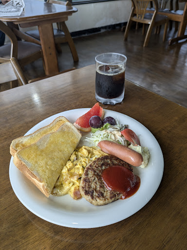 Read more営業中の幟がなければ、そこに喫茶店があるとは気付きにくい佇まい。常連客さえ来てくれたら、それでよしという感じかもしれない。早朝にお邪魔してスペシャルモーニングを注文。店内は広く、2面がガラス張りで明るく開放的。ベーコンとしめじ入りのスクランブルエッグがとても美味しかった。恐らく業務用であろうハンバーグは、少し脂がクドい印象。アイスコーヒーの量が最初からグラスの6分目ぐらいしか...