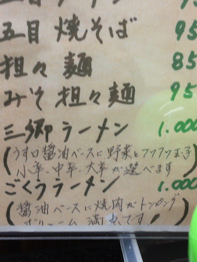 マイナス点は、ニンニクニラ餃子が少々お高いかなと。。サイズを大きくするか、もう少し安いといいですね。 また、夜中に行ったので常連さんのタバコの煙が途切れず流れてきて、吸わない人にはちょっとキツいです。 ラーメンやチャーハンが美味しいのに勿体無い。。