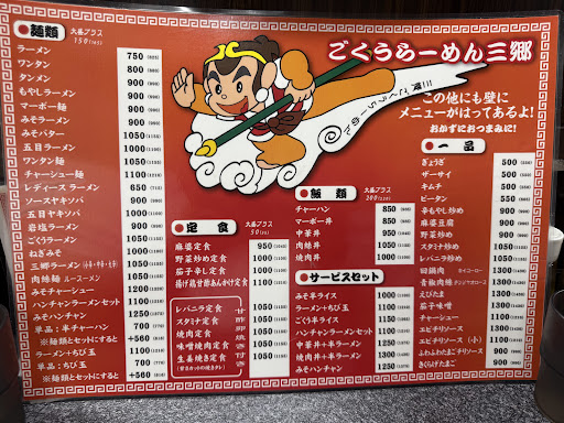 店前通り「孫悟空」の絵が描かれた看板の下を潜ると、恐らくは感染症対策で間隔を少し広く開けたカウンター5席と、4人掛けテーブルが5つ。
