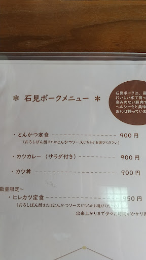 Read more石見ポークのメニューが推奨されていたので3回訪問して トンカツ定食 カツ丼 カツカレー と注文しました。 浜田市の石見ポークが自慢の店は厚切りで視覚的効果がありますが、この店はあそこまで厚切りじゃないので食べ易かった。
