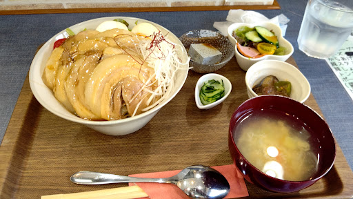 Read more昨日三郷をぶらりしていて、遅い昼飯をとるため、ググッてみると、良い感じのお店を発見❗ 細い路地裏をクルマで走行しておりますと、在りました❗りとるキッチンです❗ 駐車場の場所を若い女性スタッフにお聴きすると、感じ良く丁寧に教えて下さいました。 奥にはマスターらしいまダムが微笑んでおりました。 私はメニューを観ないで決め打ちしました。 そうです、手造りチャーシュー丼❗ 美味そうな写真を観ていたので、間違い無いとオーダーしました❗ チャーシュー丼が弾着すると………そのボリュームにちょっと後付去りしましたが(食べ切れるのか?)……… 食べてみると、柔らかいバラ肉のチャーシューと飽きの来ない味付けで予想以上の美味さですよ❗ 小鉢が4つ付いてきましたが、どれもど真ん中の味付けでした❗ お腹が苦しくなってきましたが、(ᗒᗩᗕ)まダムが追い出汁してくれたので、美味しいので、箸が止まりません(≧▽≦) なんとか完食できました。 (...
