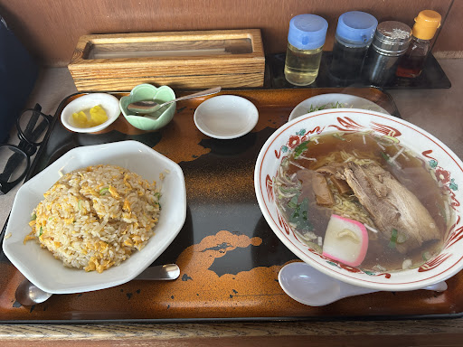 3点セット1,200円を注文。醤油ラーメンと餃子と炒飯ですが、他の方の投稿では量が少なくなったとの事ですが、通常のセットに比べればかなり多いと思います。餃子は後から来たので写真撮りませんでしたが、大きめの餃子が5個もありますし、ラーメンの量も普通の量で、炒飯だけは通常よりは少なめだと思いますが、それでも十分過ぎる量でした。 無理に完食する気は無かったので結局炒飯は好みの味では無かったので半分残しました。 味付けは塩と胡椒のみのように感じられました。 座ったのはカウンターだったので厨房からの中国人の大きな声が喧しく、落ち着いて食べることが出来ません。 せめて本場の中国人の料理で美味しかったら良いのですが、普通の日本人が作っている町中華の方が遥かに美味しいですね。 それなのにお店は地元の人で満...