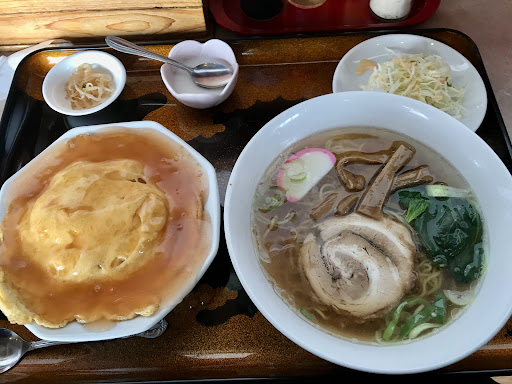 ラーメンはチャーシューが柔らかく、美味しかったです。天津飯の餡は酸味の立つお味。