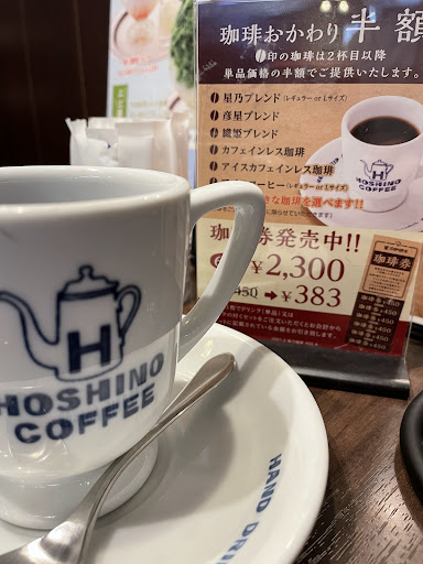 Hoshino Coffee Shop is a coffee shop inspired by a traditional Japanese coffee shop. There are many food items on the menu. We recommend the pancakes and shaved ice. You can refill your second cup of coffee at half...