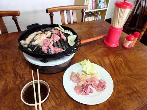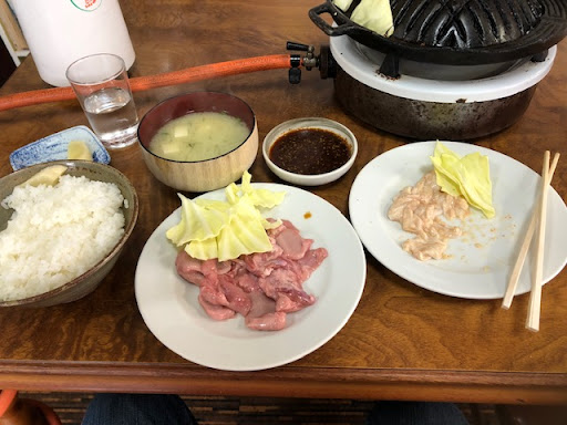 美郷町にホルモンの美味しい店があるという事で、仲間とバイク2台で急行。旧西郷村の中心部にそのお店はあります。あたり一面のどかな雰囲気。 開店11時前に到着、一見普通の民家。談笑しながら待つことしばし...。お店の方が暖簾を出され、私らに気付くと何故かおどろいた様子。あいさつをしてお店に入り早速、ホルモン、タン(各350円)を注文。次から次にお客さんが入ってきます。 ここのホルモンはジンギスカン鍋で焼くという独特なスタイル。 あと、ごはん(200円)とみそ汁(100円)を追加注文。 みそ汁は魚介の出汁が効いて美味しい。ホルモンは普通の感じだが、何といってもタレ。この絶妙な秘伝のタレは、甘すぎず辛すぎずなかなか無い。 あっという間に完食、1人ちょうど1000円。 となりの席の常連らしきお客さんが話かけて来られたが、滑舌が悪いのか、ホルモンをいつまでも嚙みきれないのか話が聞き取り辛く何を喋っているのかわからな...