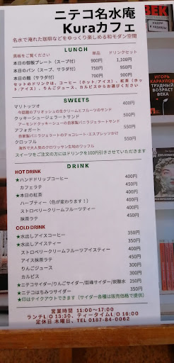 2021.06.26 リニューアルし店名もKuraカフェとなり、メニューも一新したそうなので行ってみました。 入って自動検温&消毒液、各卓上にはメニューが無く入り口にあるメニューやボードから決めて着席前に会計です。 入ってすぐ右には手洗い場も設置されており、テーブルにはアクリルだったり障子だったりで仕切りがあります。 コロナ対策の為にリニューアルしたかのように対策されてました。 満席で何組もの席待ちが出来る程でした。美味しかったけれど、どこにでもあるお店になっちゃったな…もう前のメニューは食べられないんだと思うと物凄く悲しかった。そうめんと天ぷらセット750円、美郷まんま御膳1080円、季節のデザートとお飲み物390円大好きでした。正直あのお店を返して欲しいです。 2019.08 今日は隣接するレストラン蔵の方に入りました。厨房は流しソーメンの方と一緒です。こちらはゆったりとお食事出来ます。繁忙期だからかデザートセッ...