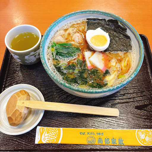 Read more平日のランチタイムに使用しました。周りに飲食店が少ないからか、平日にも関わらず1組ウェイティングしていました。 中は広々としていて、席はボックスタイプでゆったり座れる構造です。 暑い日だったので、初めて南部そば冷麺(冷やしそばに冷麺風のトッピング)を食べましたが、そばの舌触り良く、つるつると食べやすかったです。食べやすかったせいが食後も腹6分目くらいだったのでいなり寿司をつければよかったと思いました笑 同行者もおいしい、との感想で、チェーン店っぽい雰囲気の割にお蕎麦が高いなと思っていましたが、金額相当の満足感を得ました。夜はお酒が飲めるようで、お酒やおつまみの種類も豊富そうです。