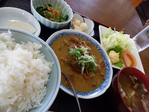 水はセルフ、トイレは昭和の渋さ。 たくさんメニューあり、悩みましたが煮込み定食を注文。