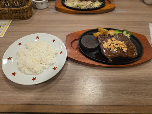 Read more母とランチでお伺いしました。 母は切り落としステーキ180g、私はトリプルグルメコンボを注文しました。 同時に料理が来たのですが、母のステーキは鉄板が熱く湯気が凄かったです。 ですが私のコンボに関しては湯気すら無く、鉄板を指で触ってぬるいなと感じるレベルでした。 お肉も同様にとてもぬるく、チキンに関しては冷たくなっておりました。一番熱いと感じたのは母のステーキに付け合わされていたポテトでした。