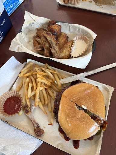 I had the Cowboy BBQ burger and the Lemon Pepper wings. The smash burger patties has a light crisp texture that was excellent and NOT burnt. The flavor was great, not over seasoned. The jalapeños were fresh and the fried onion ring was crisp. All of the textures were complementary and the flavor variations blended well.