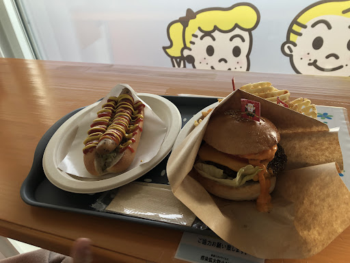 Read moreハンバーガーメインのお店です。 店内はカウンターとテーブル席に分かれています。 セミセルフレジでICやクレカなど決済方式は多様です。 ホットドッグ(¥600)とハンバーガー(¥800)、ワッフルポテト(¥450)を食べました。 値段は初め高いと感じましたが実際にモノを見ると適当です。 ご当地バーガーの様な感じでボリュームや味ともに満足です。 ホットドッグもソーセージが大きくまたピクルス玉ねぎも沢山入っていて美味しかったです。 周辺に同様のファストフード店もなく思い出作りにもおすすめです。 デザート系のメニューもあるので航空科学館に来たら是非寄ると...